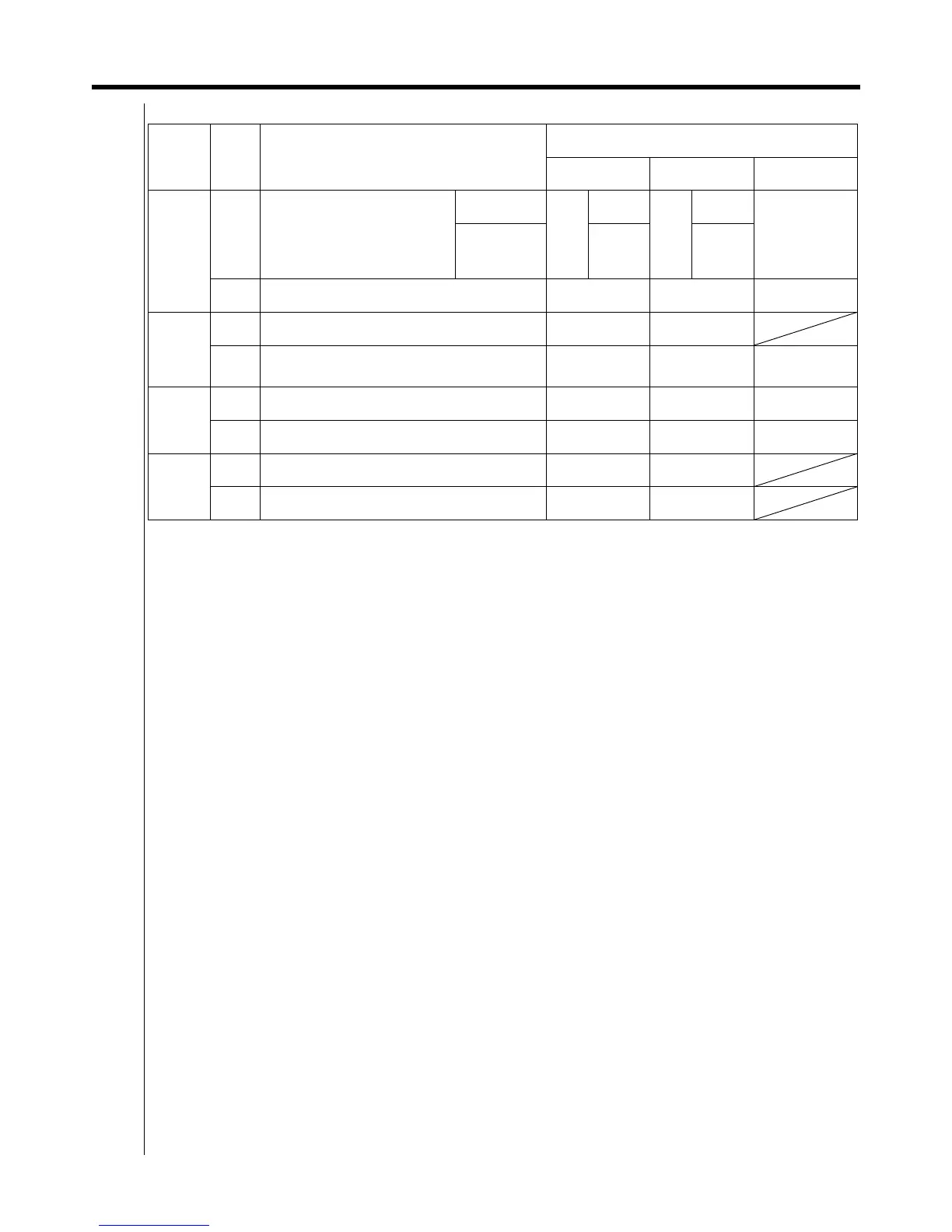 3. Do not make any settings not given in the table on the left.