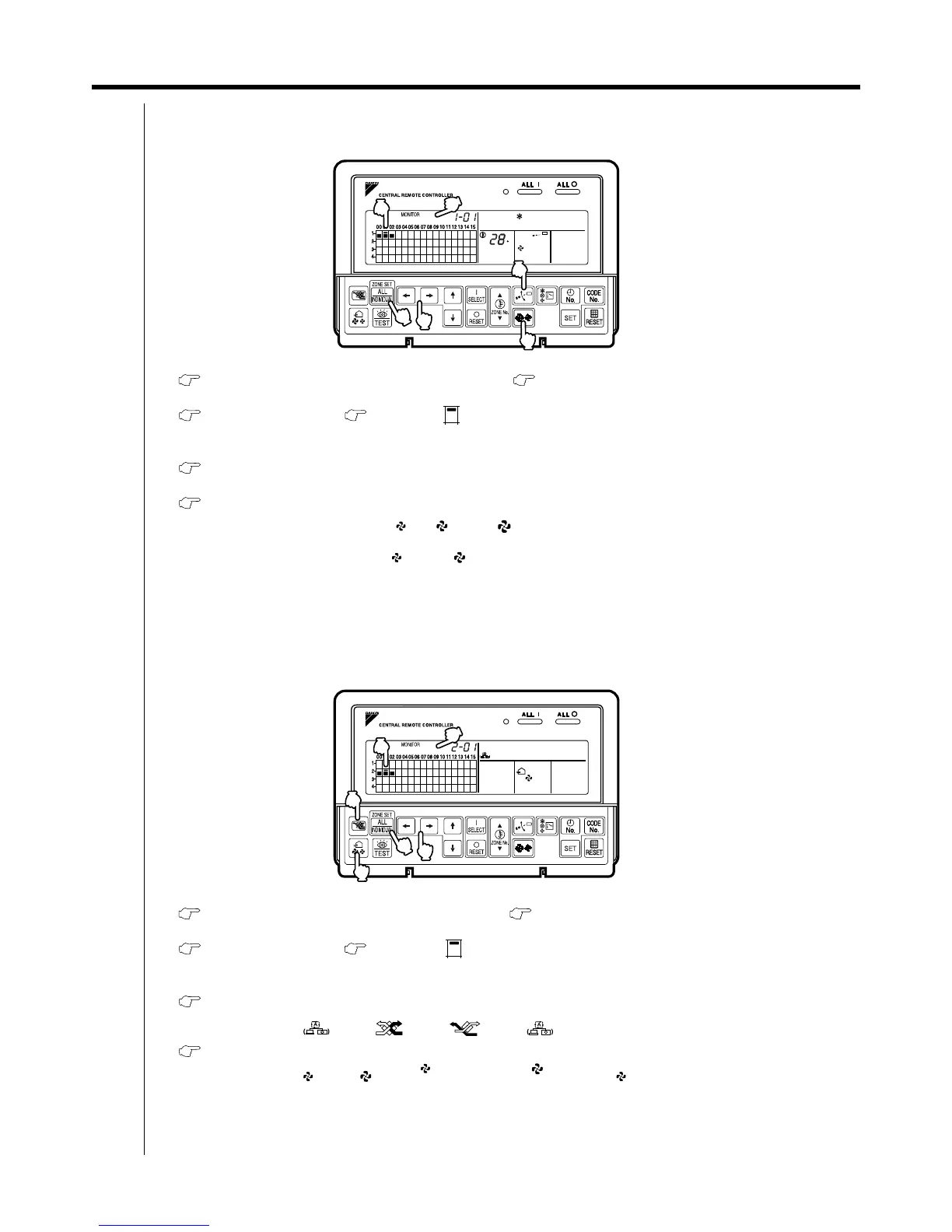 2. Using the arrow keys, move the " " to select the units to fan direction adjustment or fan strength