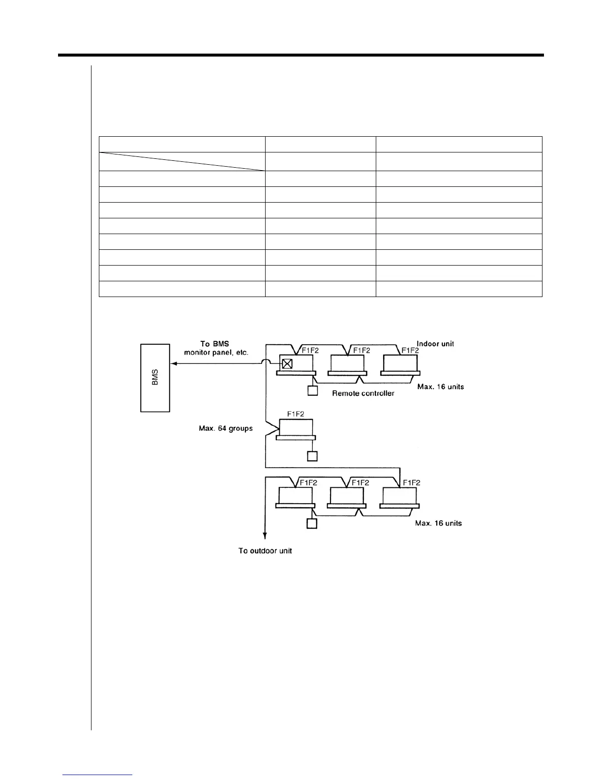 (Unified control of a max. 64 groups of a max. 16 indoor units for each group. But, the max. of indoor units is 128.)