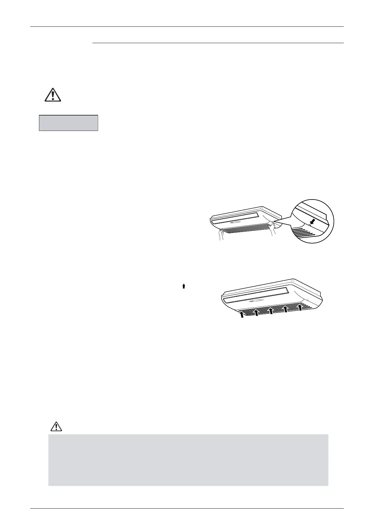 • Don’t touch the metal parts of the indoor unit. If you touch those parts, this may cause an injury.