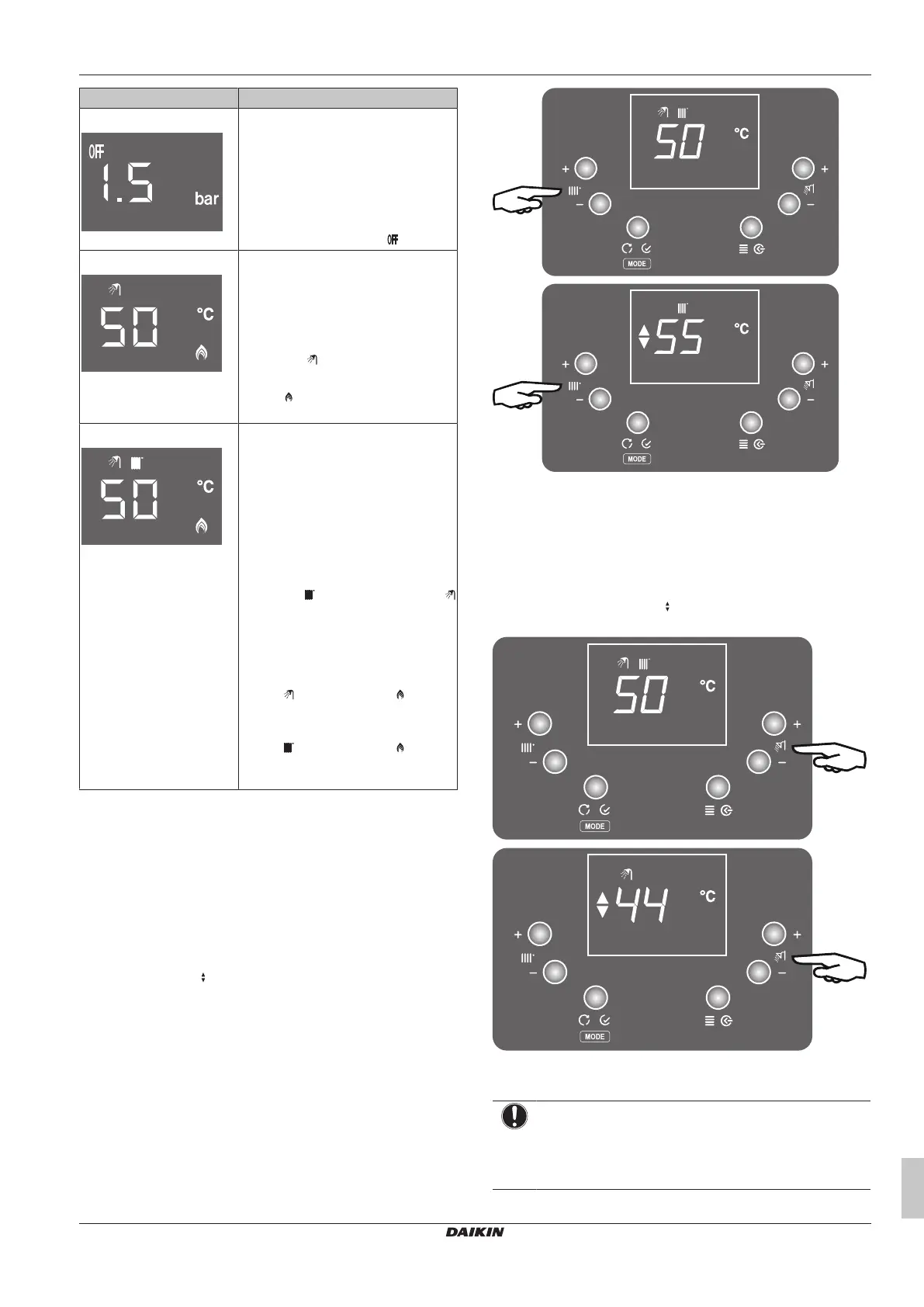 the setpoint can be adjusted by pushing DHW+ or DHW-