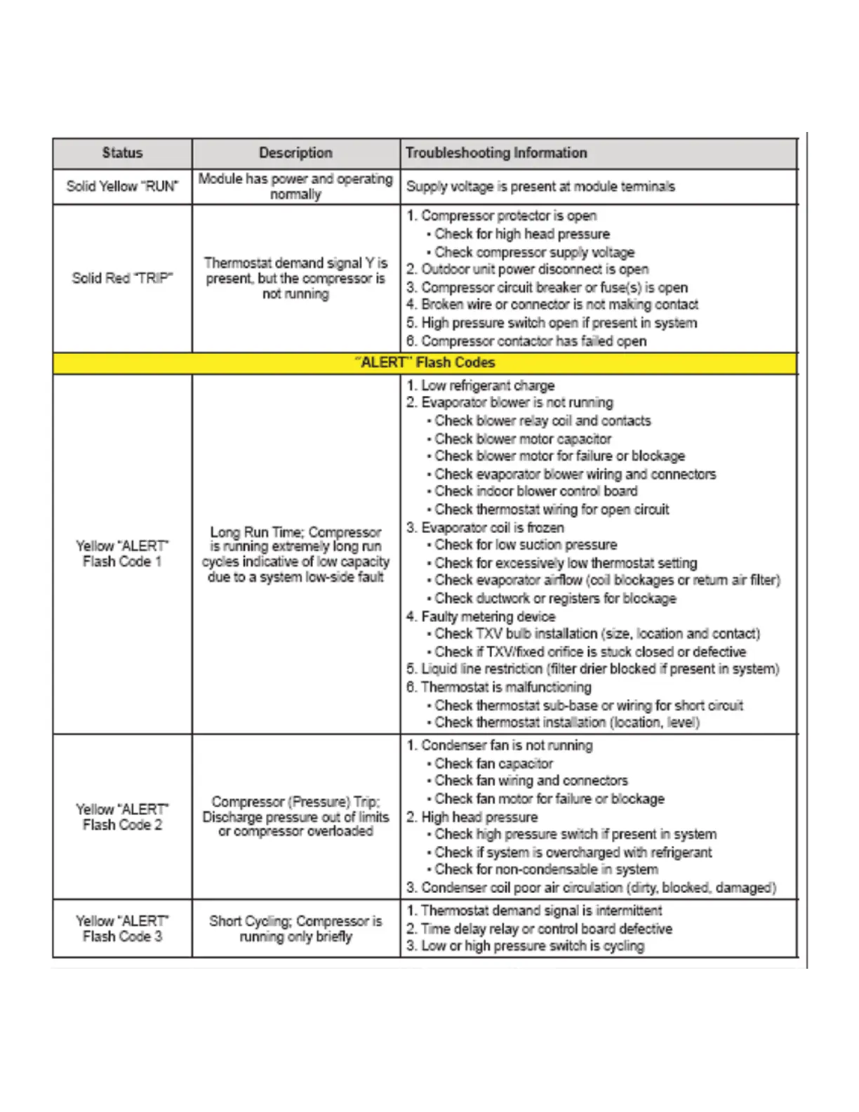 Daikin DAR09 - Servicing: CoreSense Module Diagnostics Table; CoreSense Alert Flash Codes