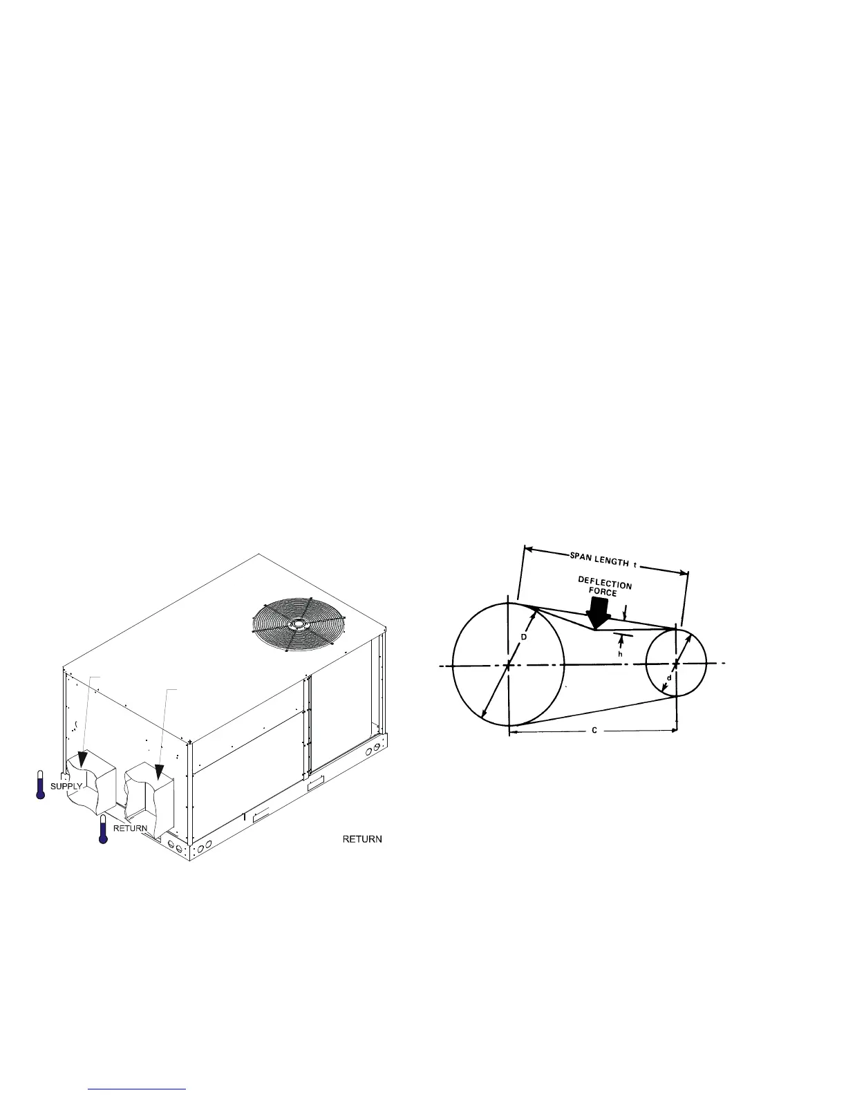 to deflect the belt 1/8" at the midpoint of the span length (See