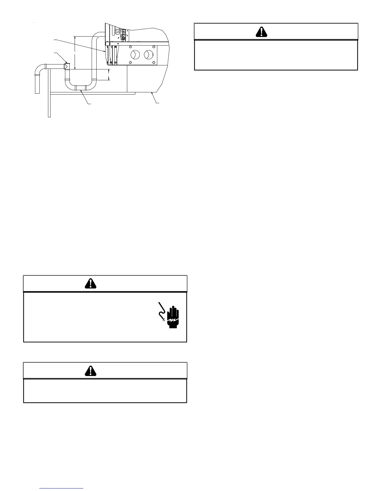 Install condensate drain trap as shown. Use 3/4” drain line and