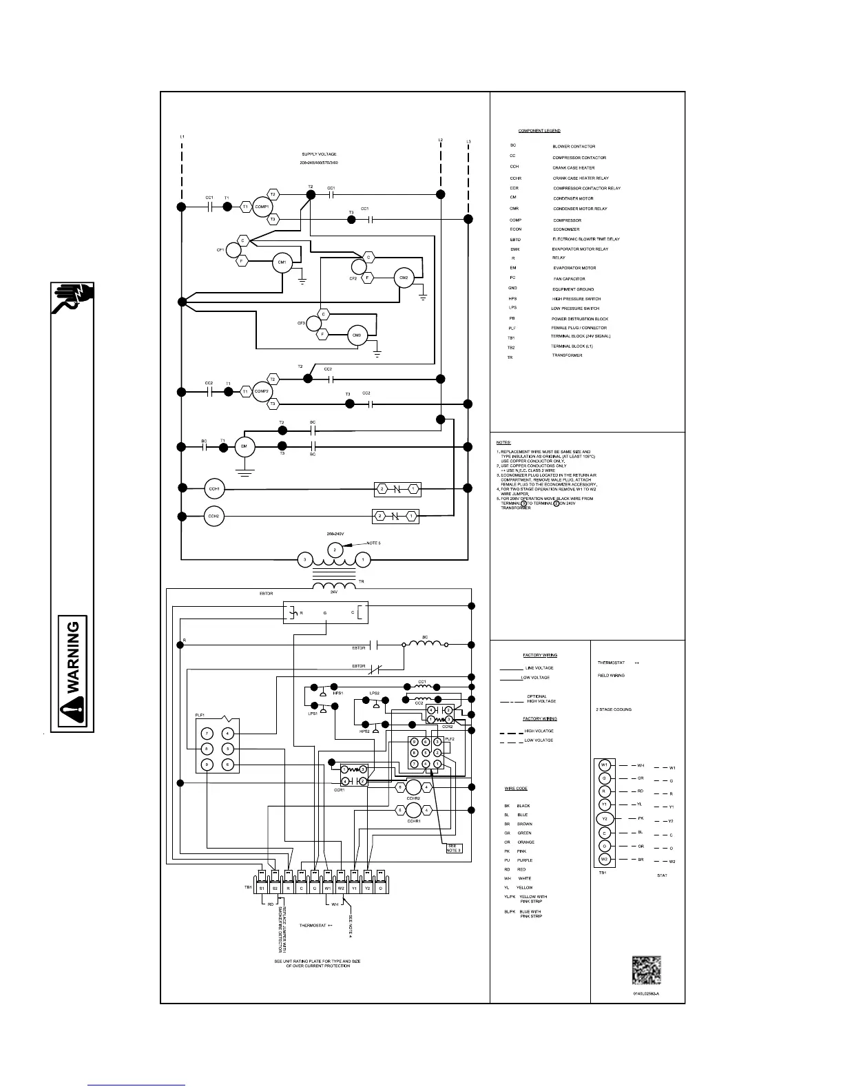 Wiring is subject to change. Always refer to the wiring diagram on the unit for the most up-to-date wiring.