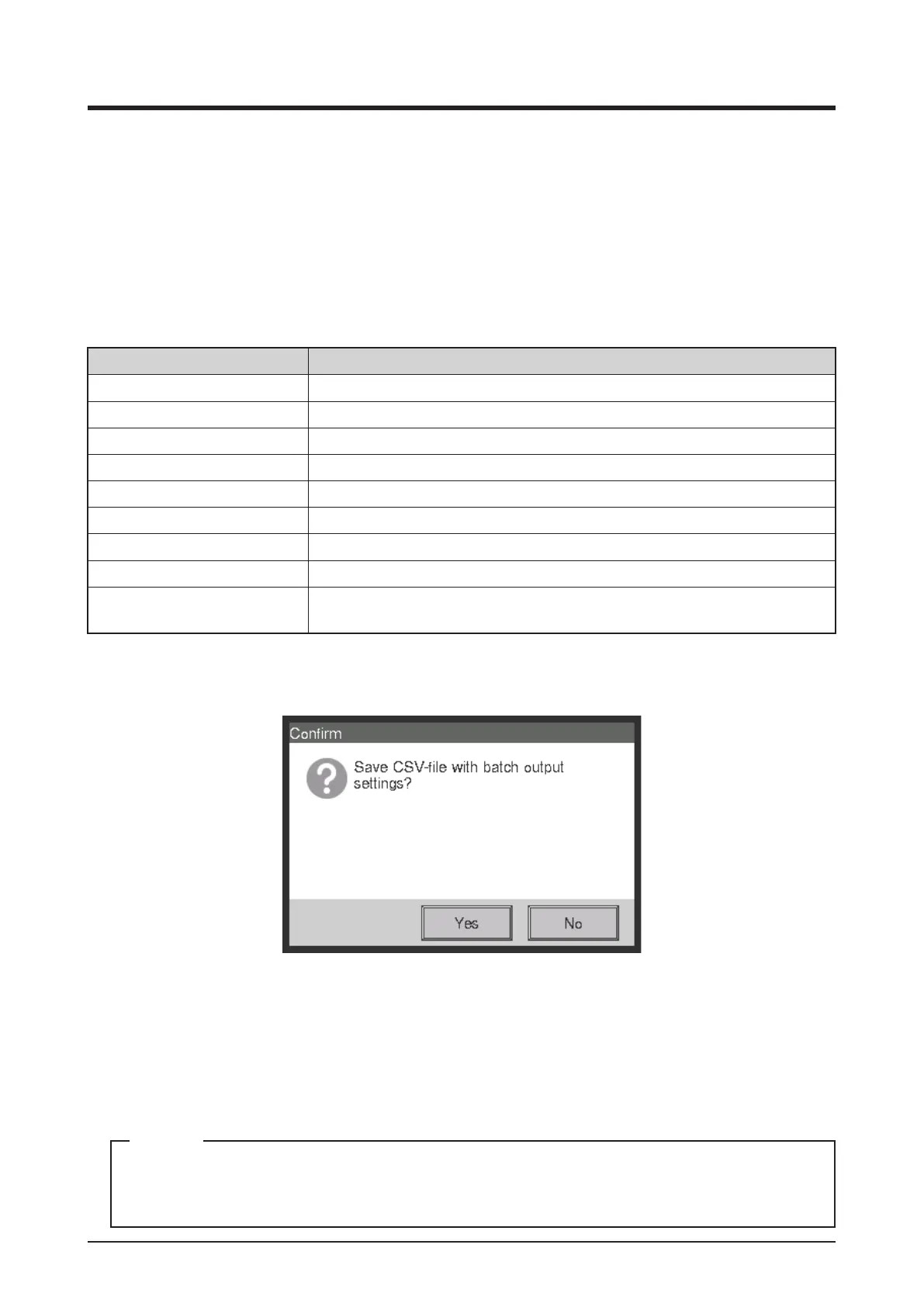 2. A confirmation dialog with the message “Save CSV-file with batch output settings?” appears.
