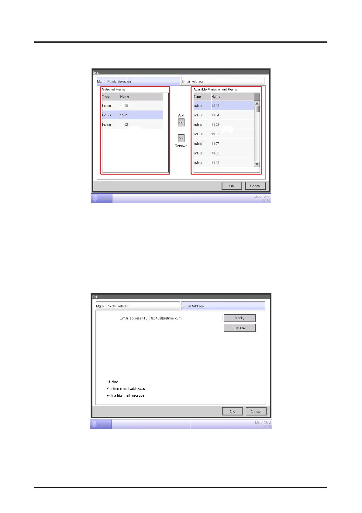 management points. Selecting a management point from (16) and touching the Remove button