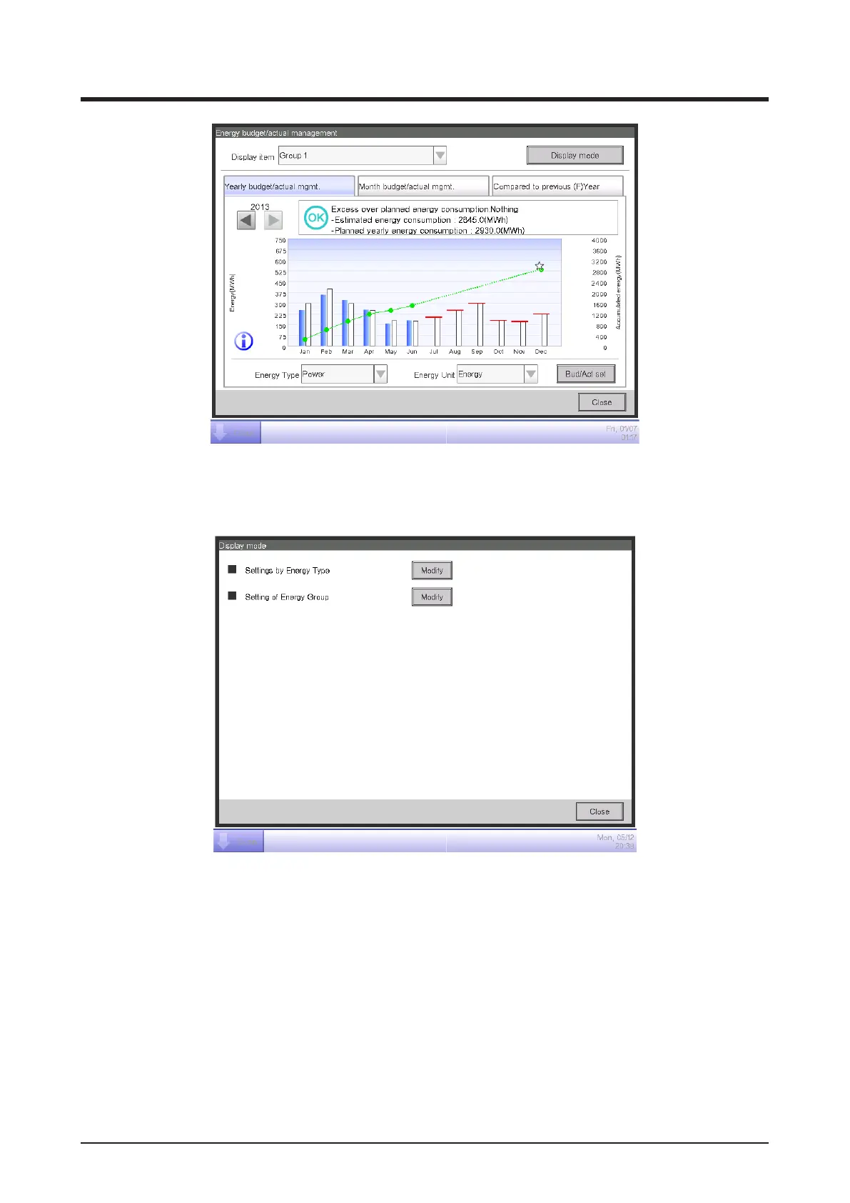 Touch the Modify button (3) and display the Energy Type screen.