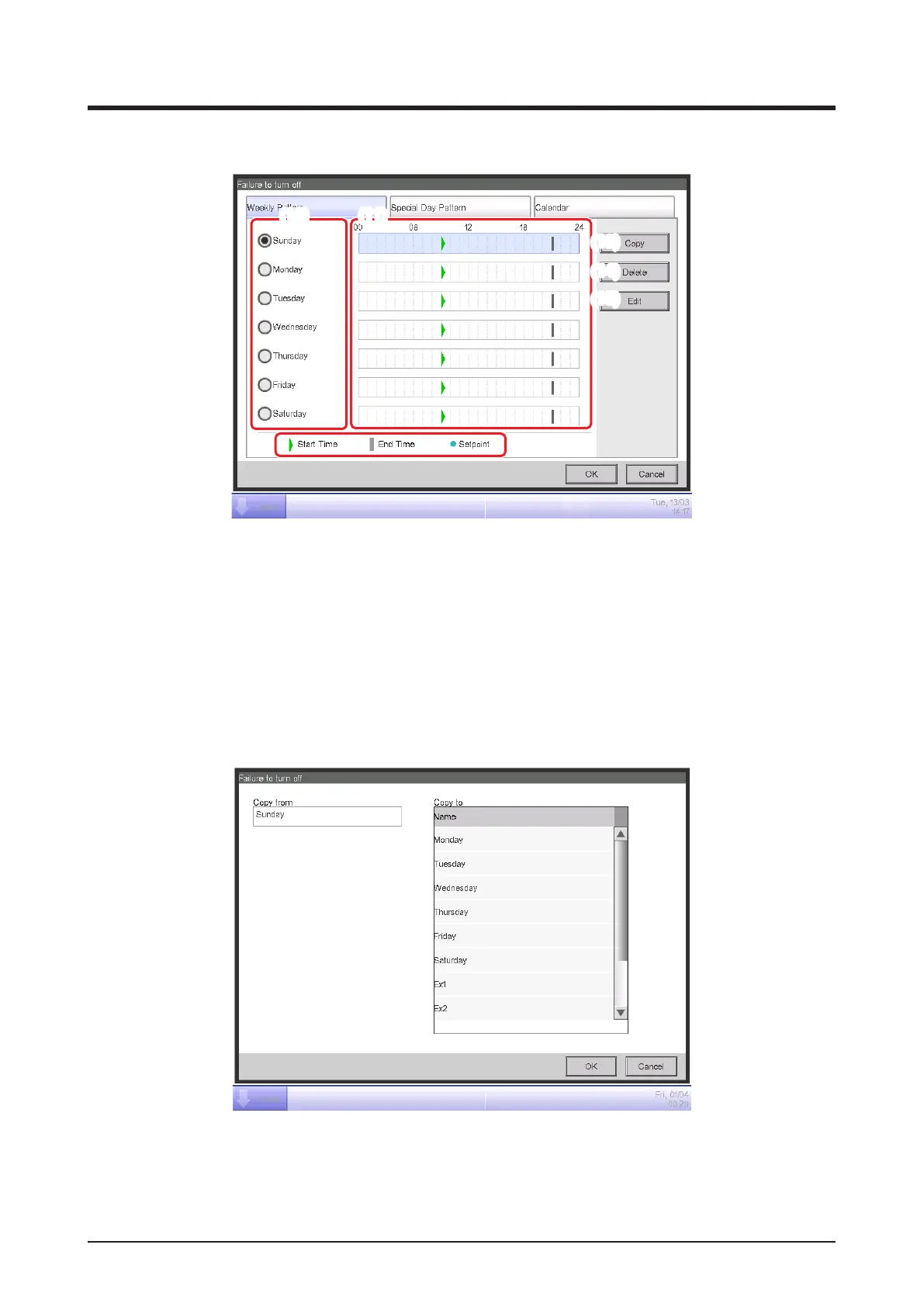 Touch the Copy button (13) to copy the operation rule of the currently selected day of the week