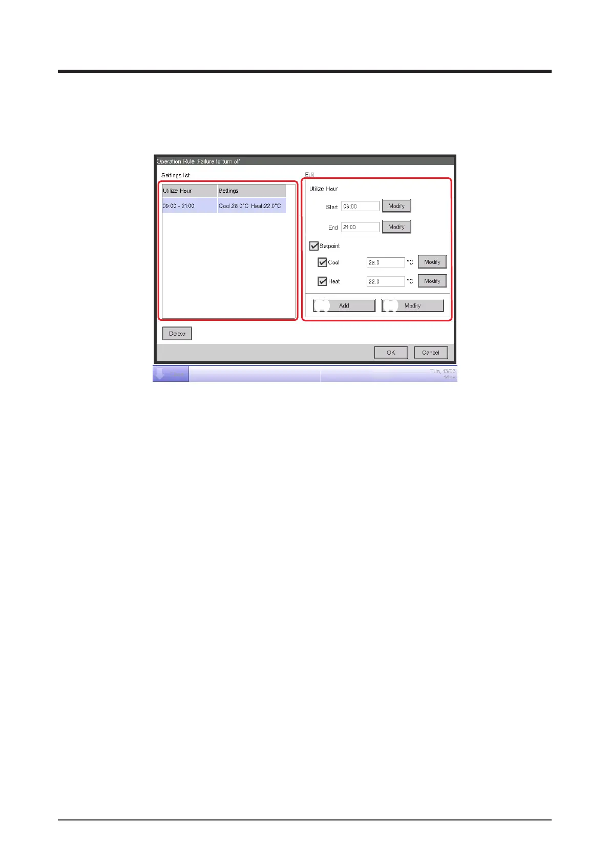 To change the settings, you can select an existing operation rule from (16), enter new settings for