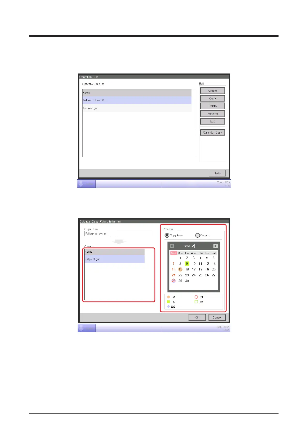 In (29), you can preview the operation rule calendar of both the source and destination of the