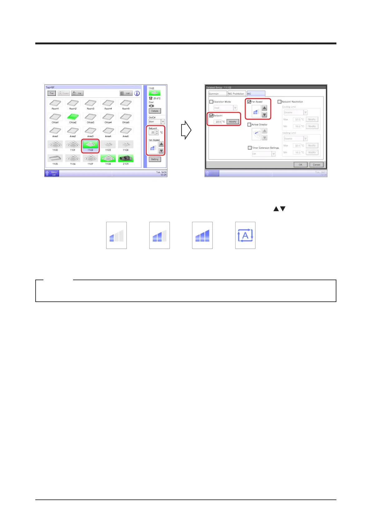 2-5 Setting up the Setpoint, Fan Speed, and Airflow Direction for an