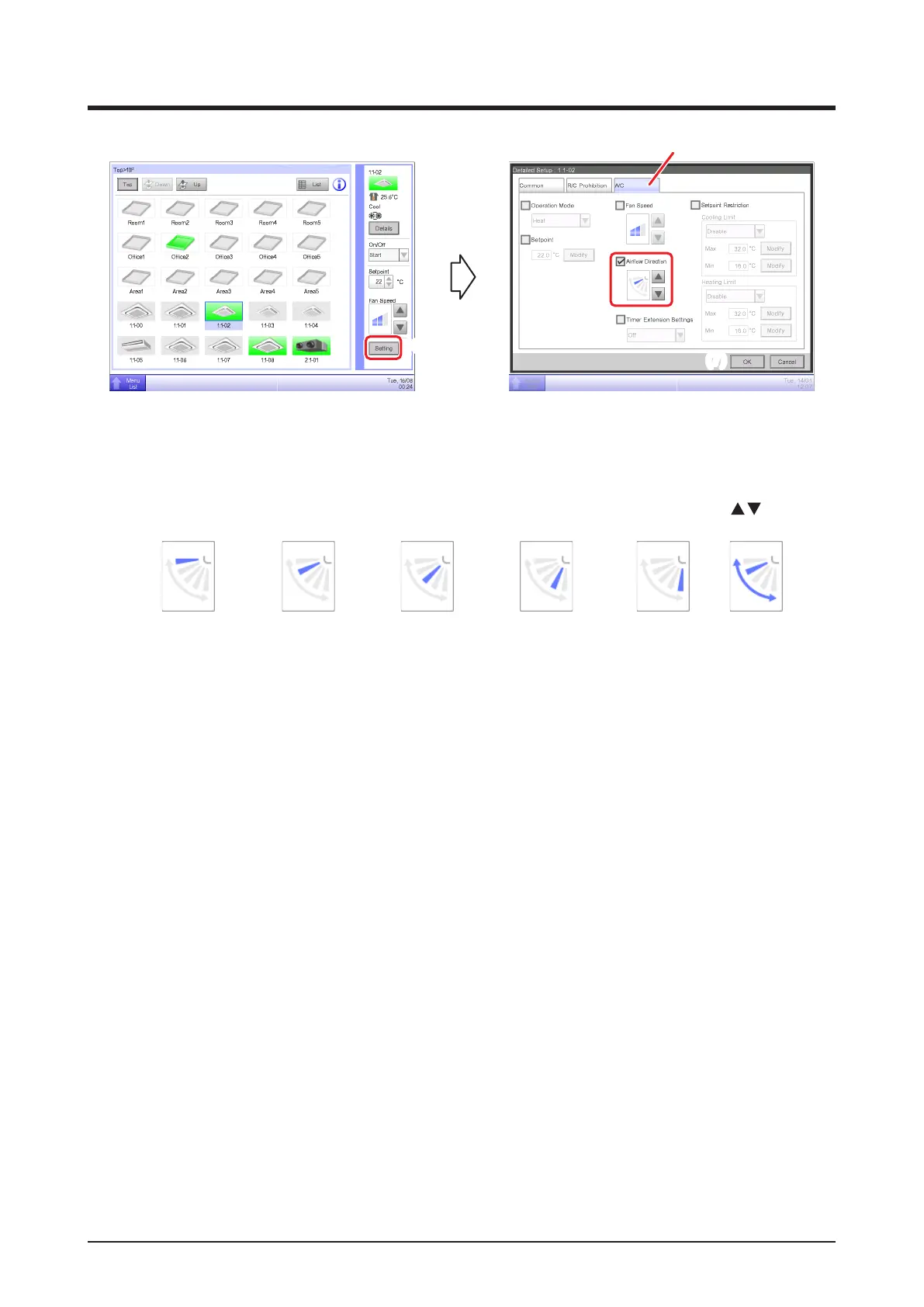 (4) To set up the airow direction, touch the Setting button and display the Detailed Setup screen.