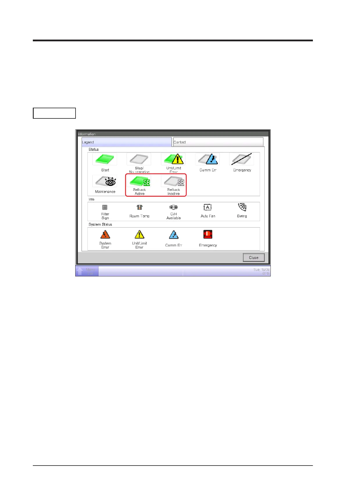 (2) No icon is displayed for a disabled function. (For example, Setback.)