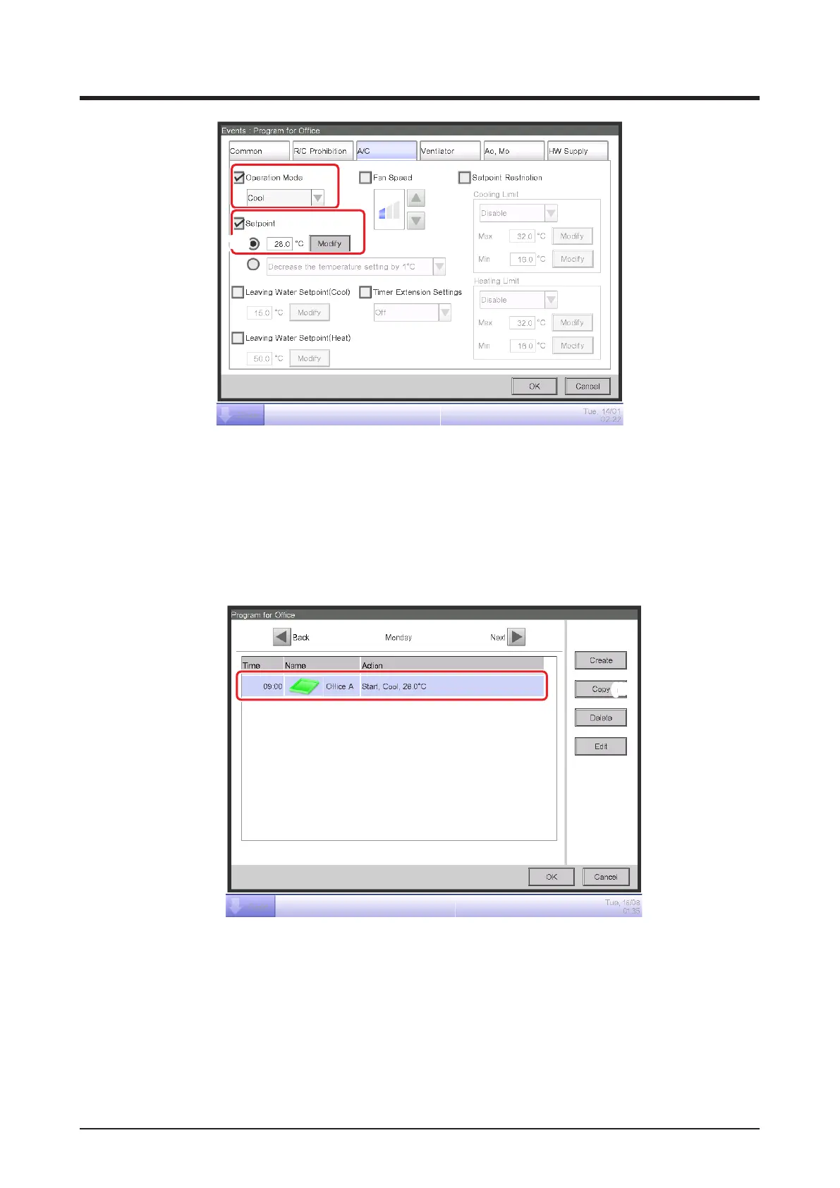 The step above nishes the setup of the event: Start cooling Ofce A to setpoint 28°C from