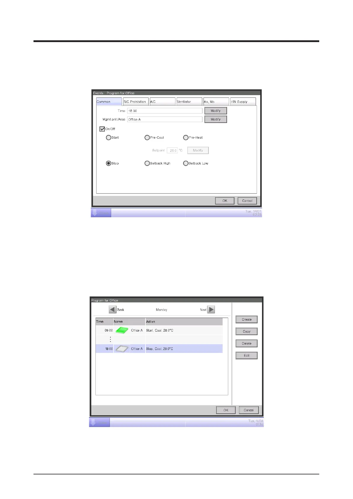 5. Setting up the operation stop time on Monday