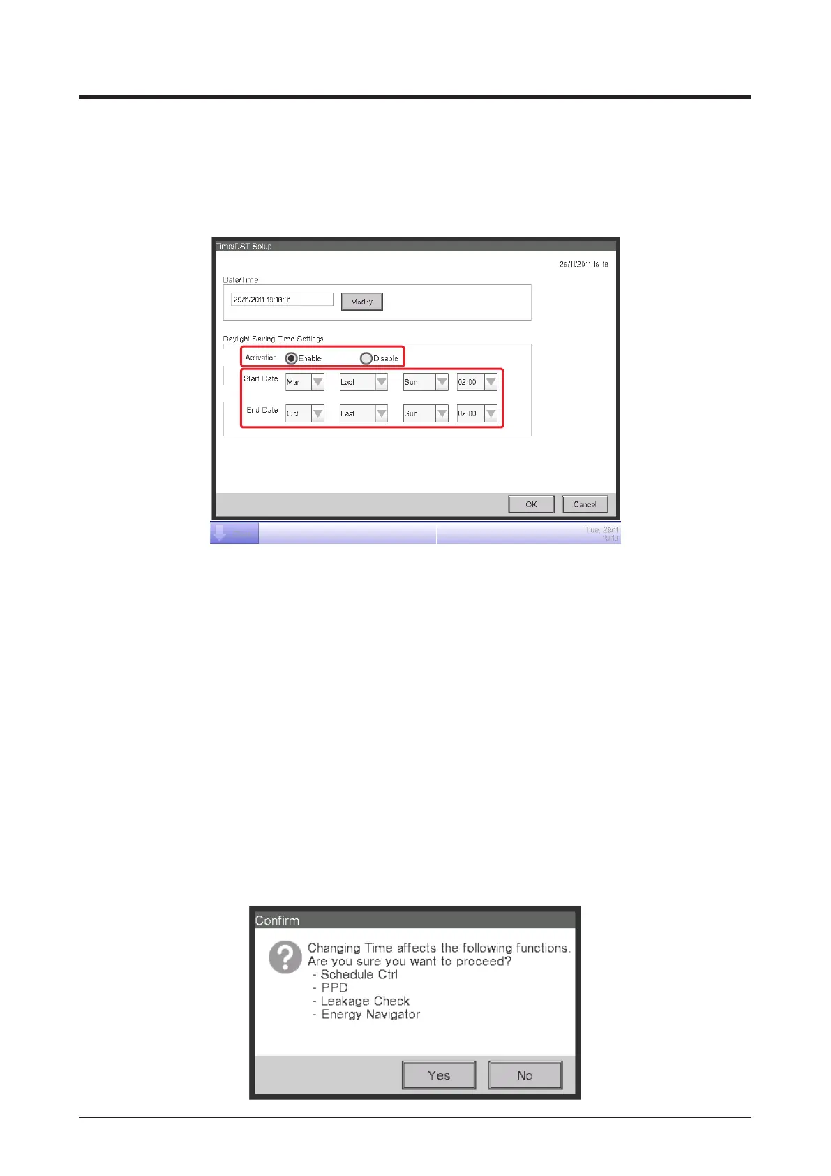 1. Touch the Time/DST button on the System Settings tab of the Menu List screen and display the