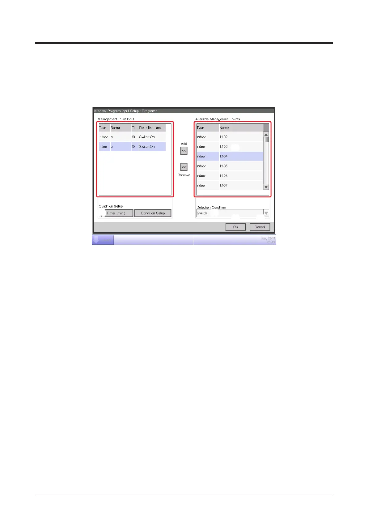 • Interlock Program Input Setup Screen