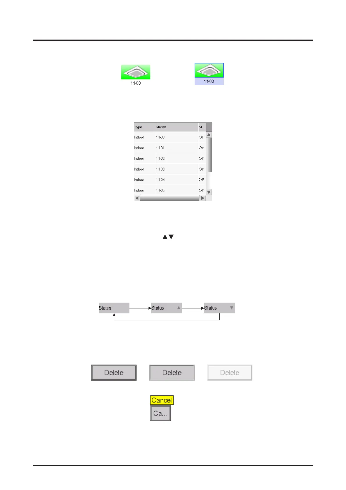 • When sorting is enabled, touch the header to sort the column according to the sequence shown
