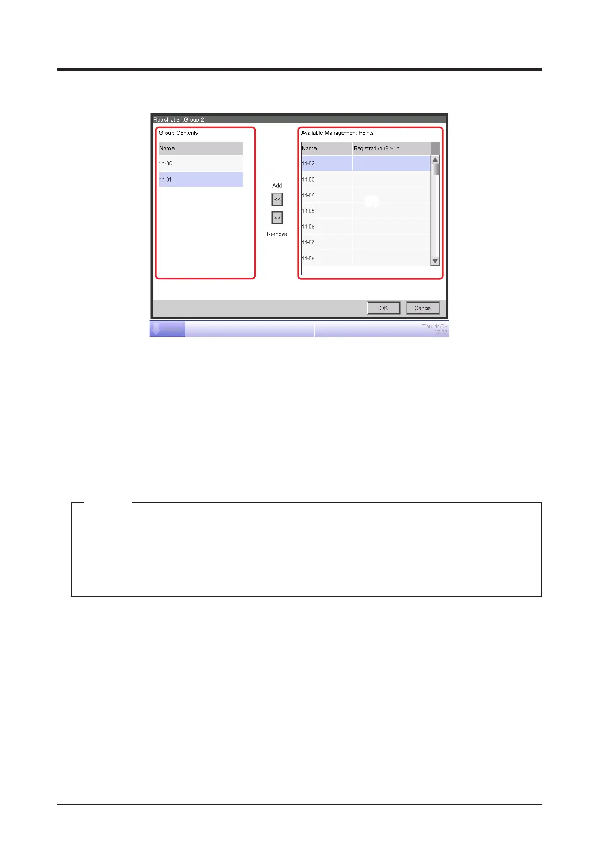 To add a management point, select one from (7) and touch the Add button. To remove a