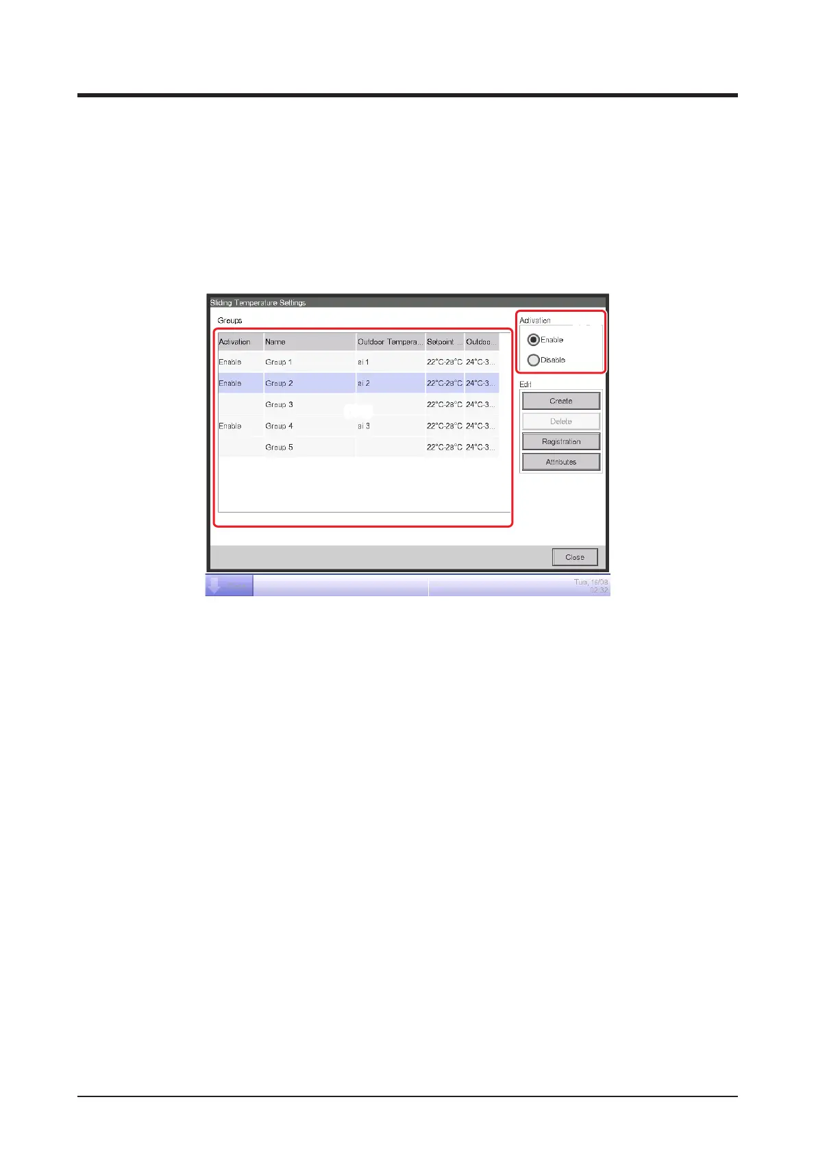 5. To enable the Sliding Temperature function for the group selected in (13), select the Enable