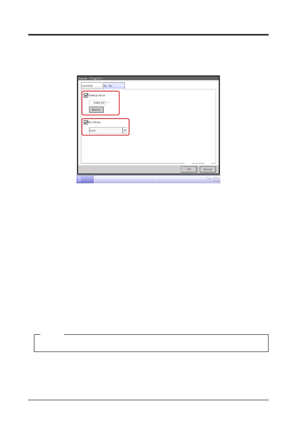 The range, incremental width, and unit of the analog values are set on the screen during trial.