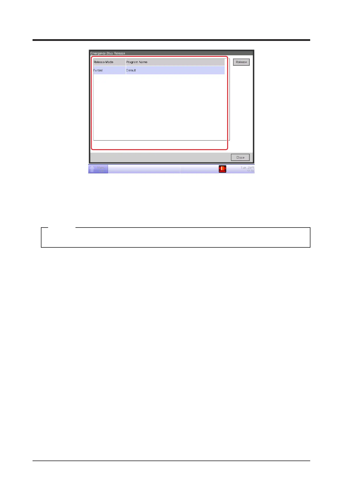 3. (3) is the list of emergency stop programs. Select the program to release and touch the Release