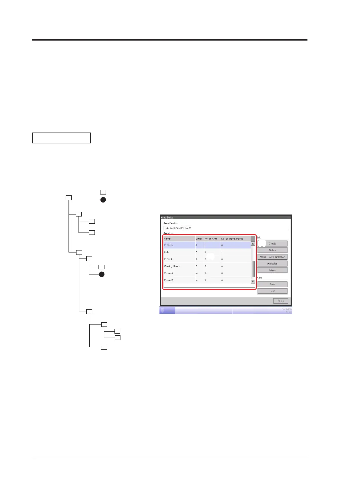 2. (1) on the Area Setup screen is the list of areas displayed as a tree structure organized in