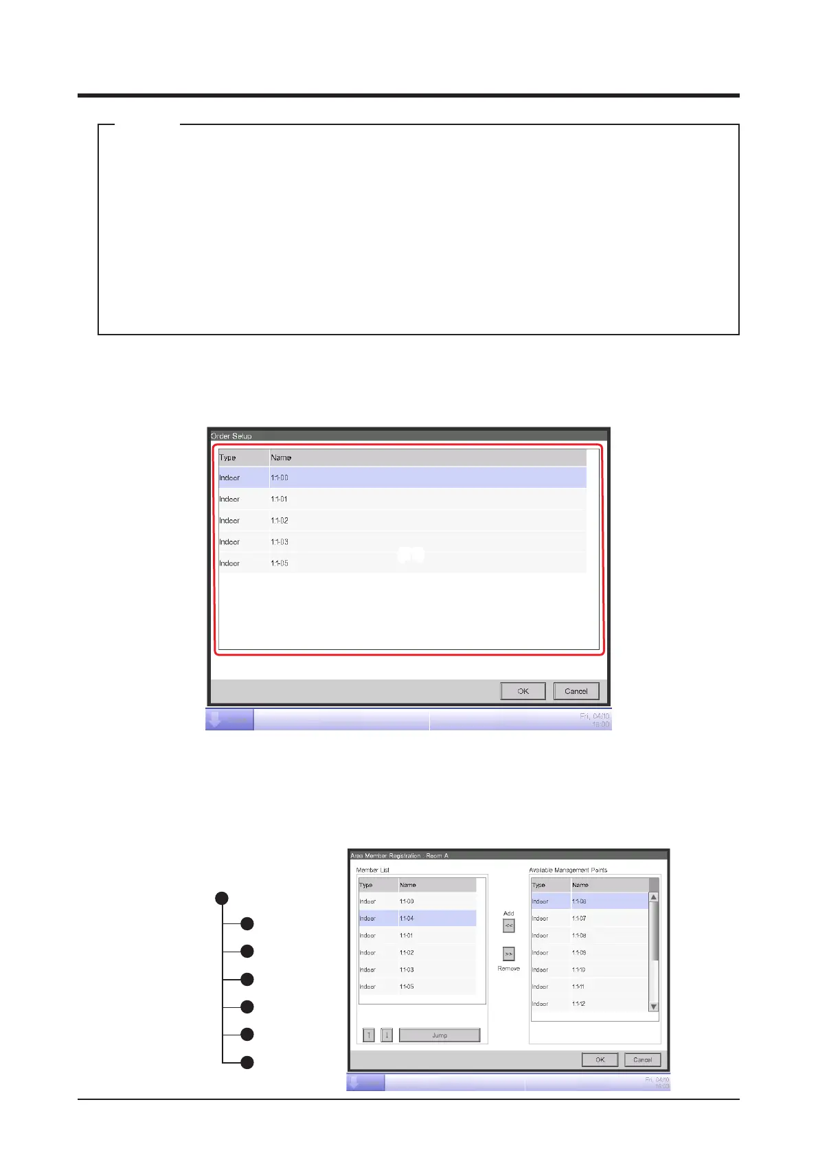 displays the Order Setup screen. You can select multiple management points/areas to move.