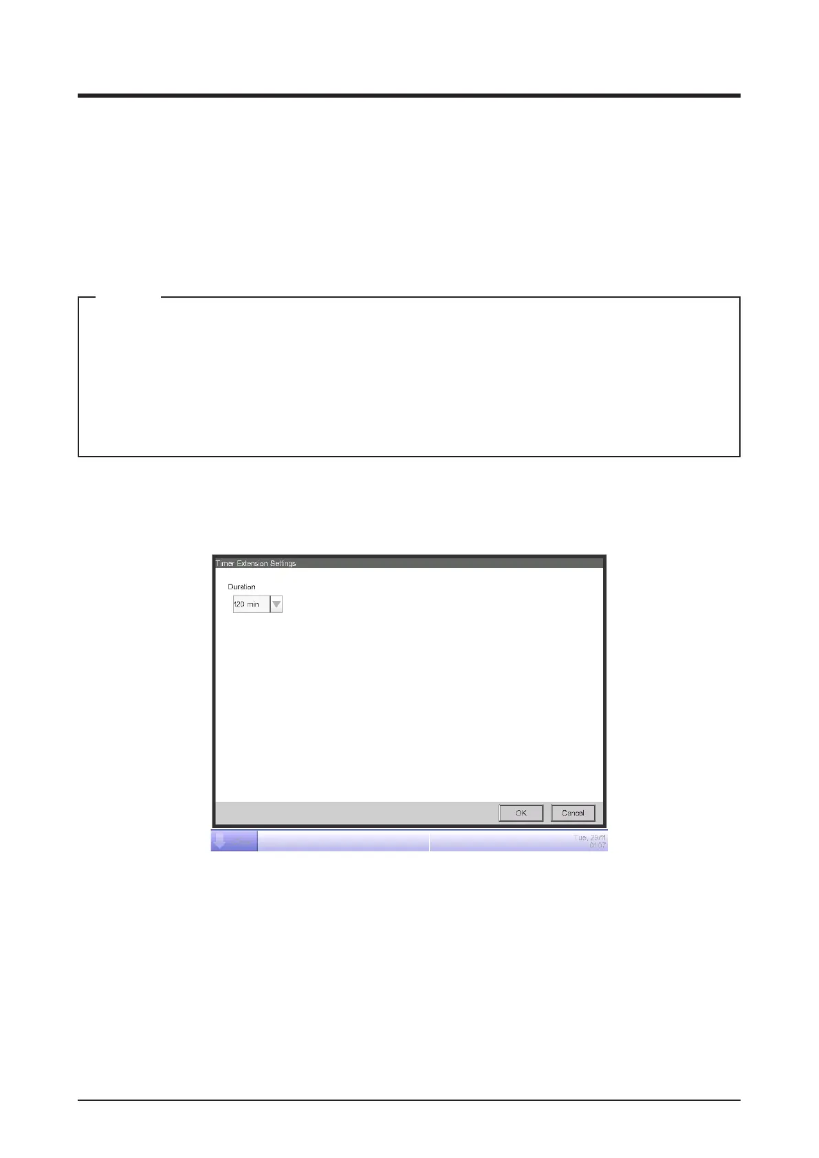 1. Touch the Timer Extension button on the Automatic Ctrl. tab of the Menu List screen and display