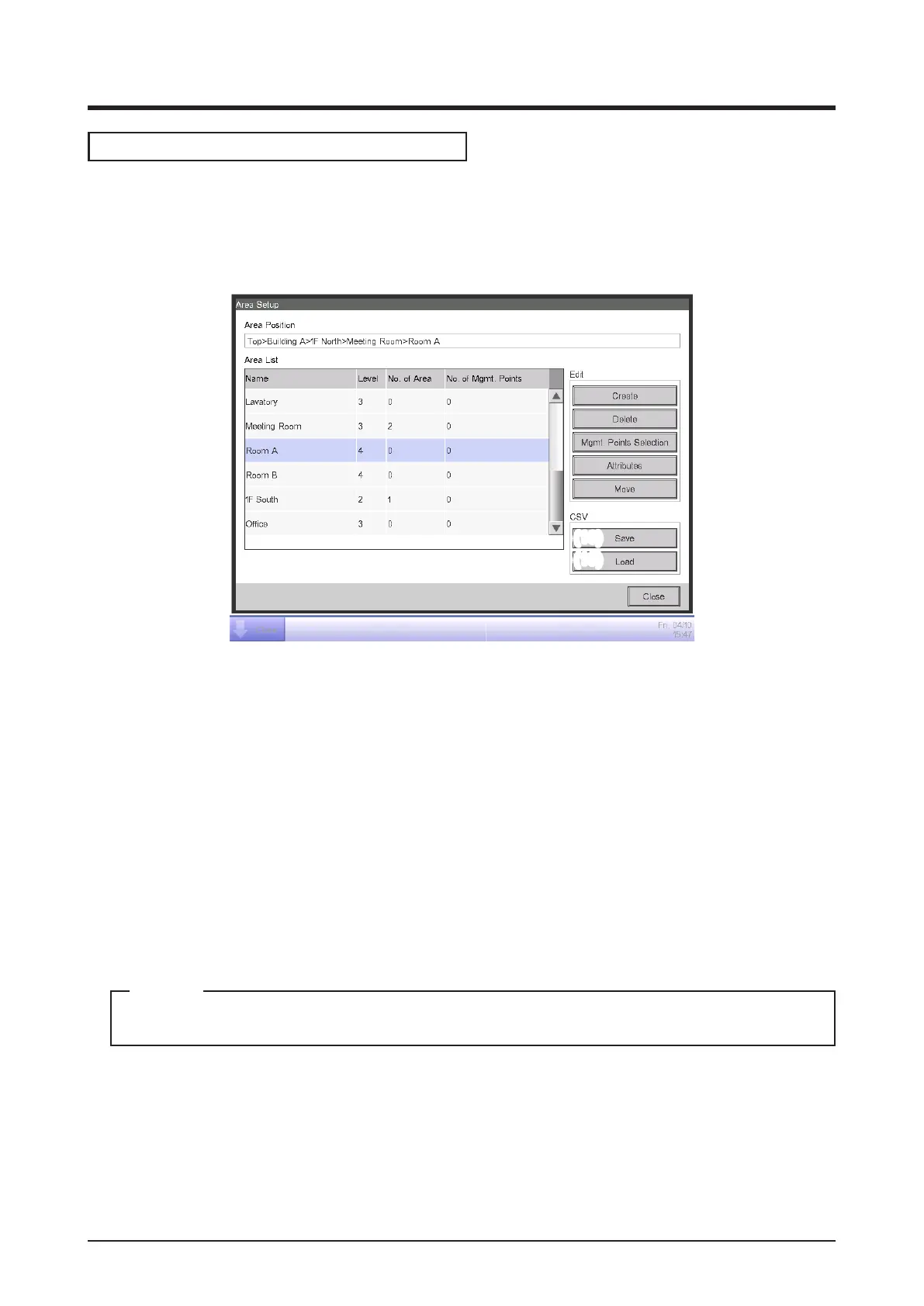 For information on the CSV le format, see “Appendix 3. Area Setup CSV le format”.