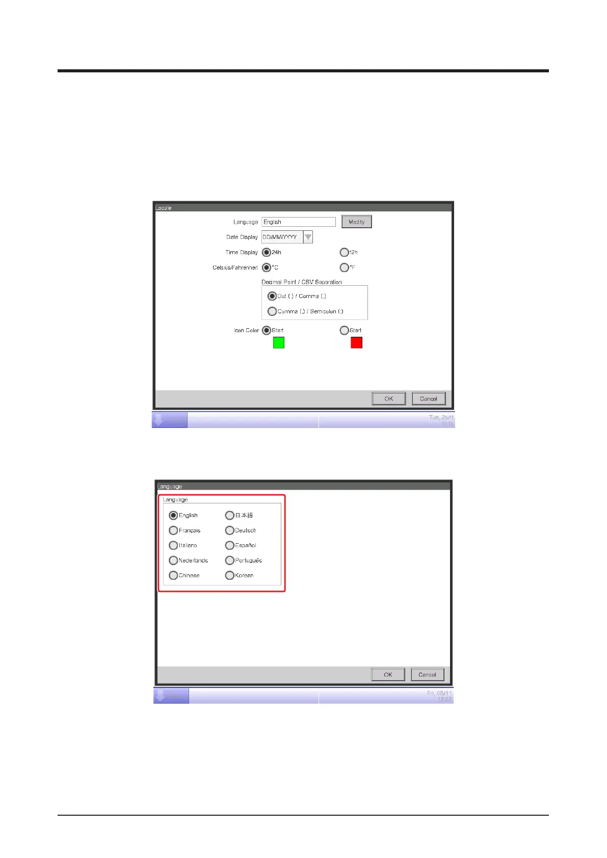 Locale screen (see “4-5 Menu List Screen: System Settings Tab”).