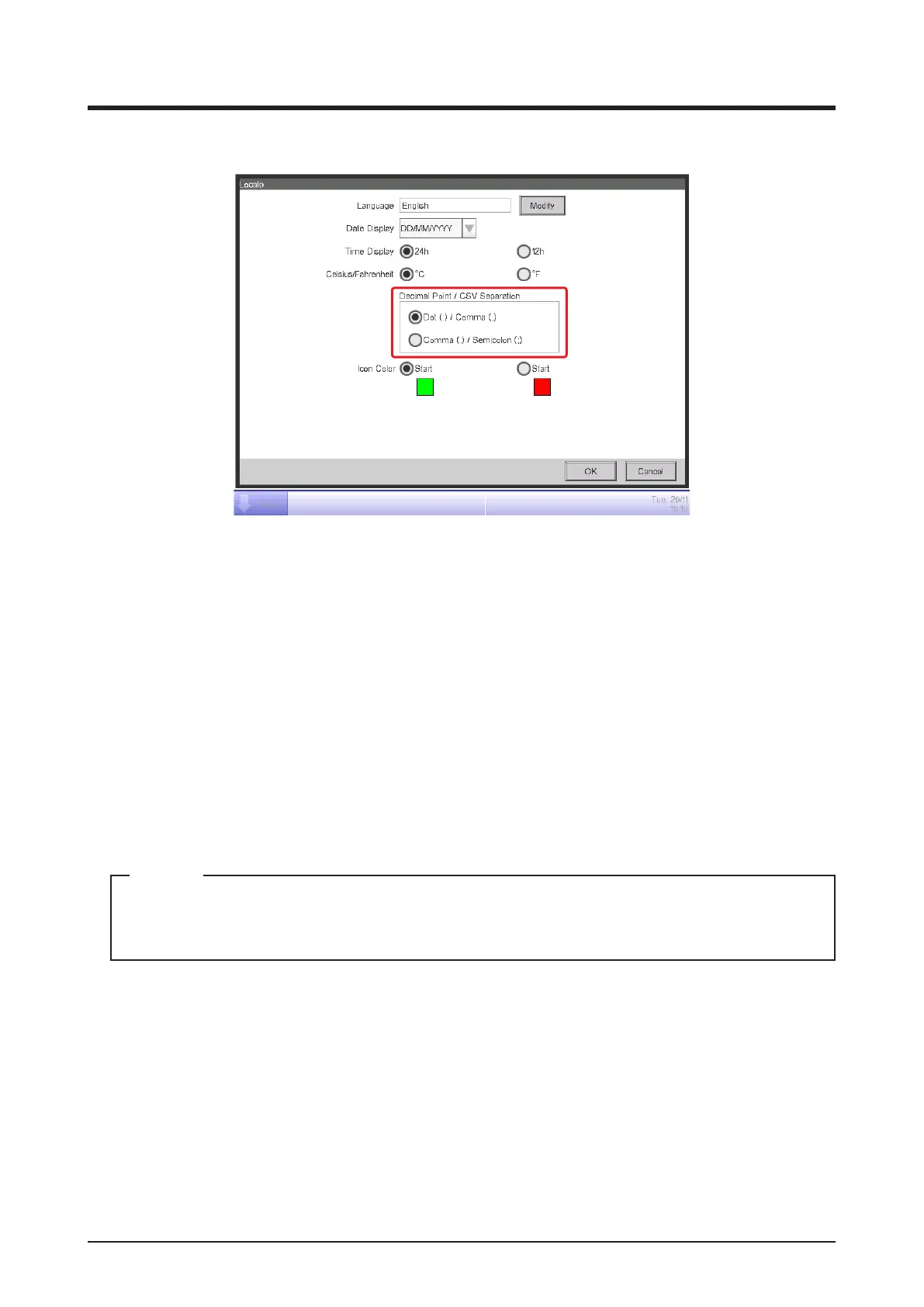 Select the decimal point/CSV file separator style using the Decimal Point/CSV Separation