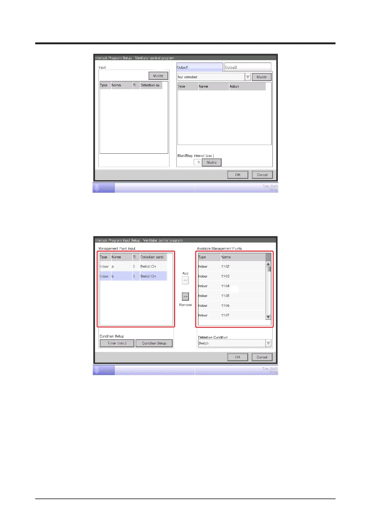 Touch the Modify button (3) and display the Interlock Program Input screen.