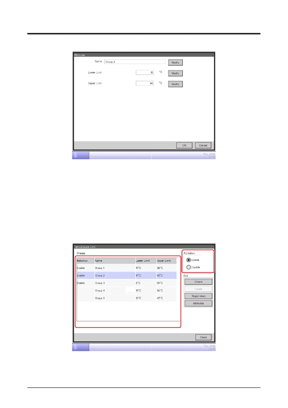 5. To enable the Temperature Limit function for the group selected in (11), select the Enable in the