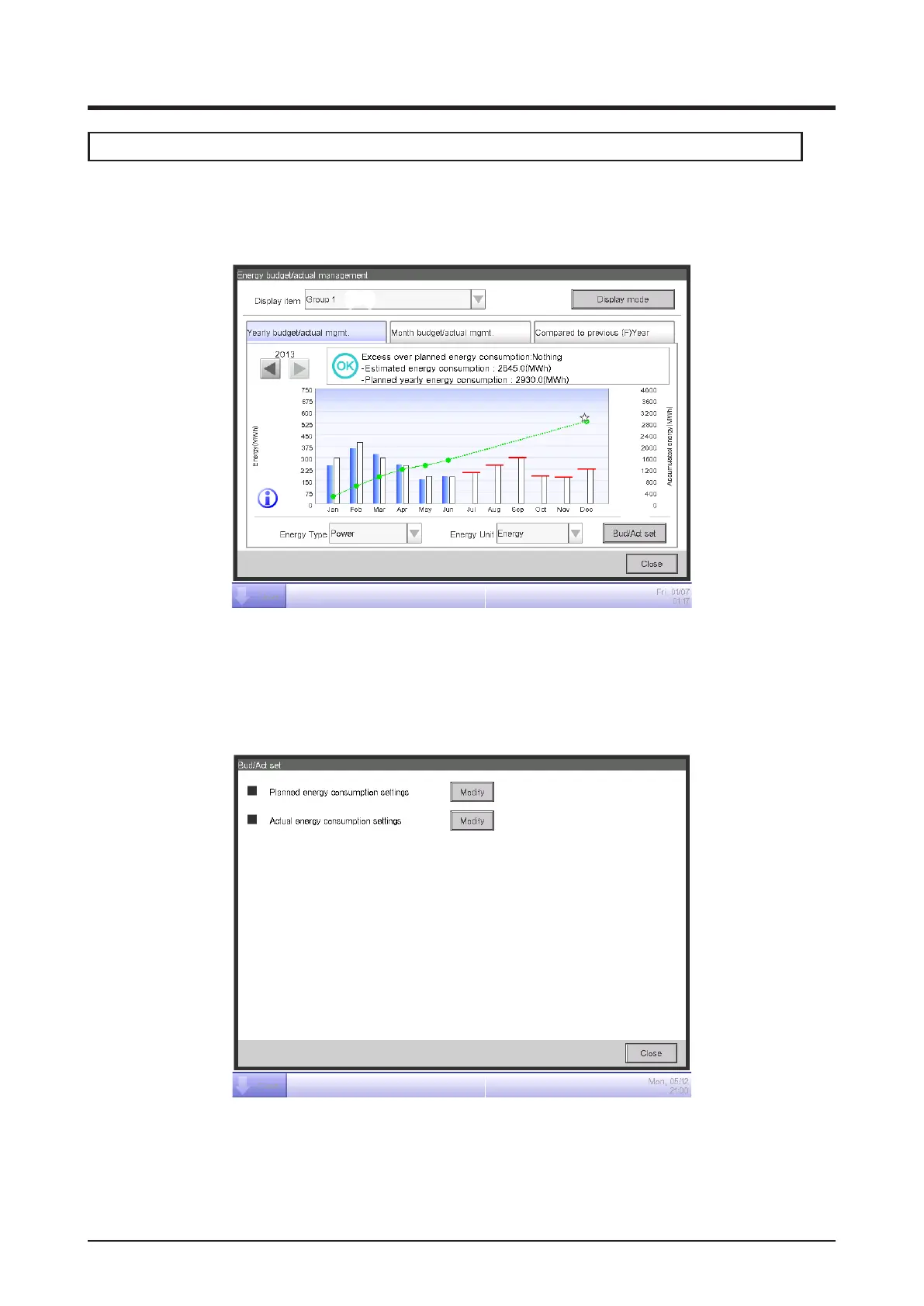 Setting up the Planned Energy Consumption/Setting up the Actual Energy Consumption
