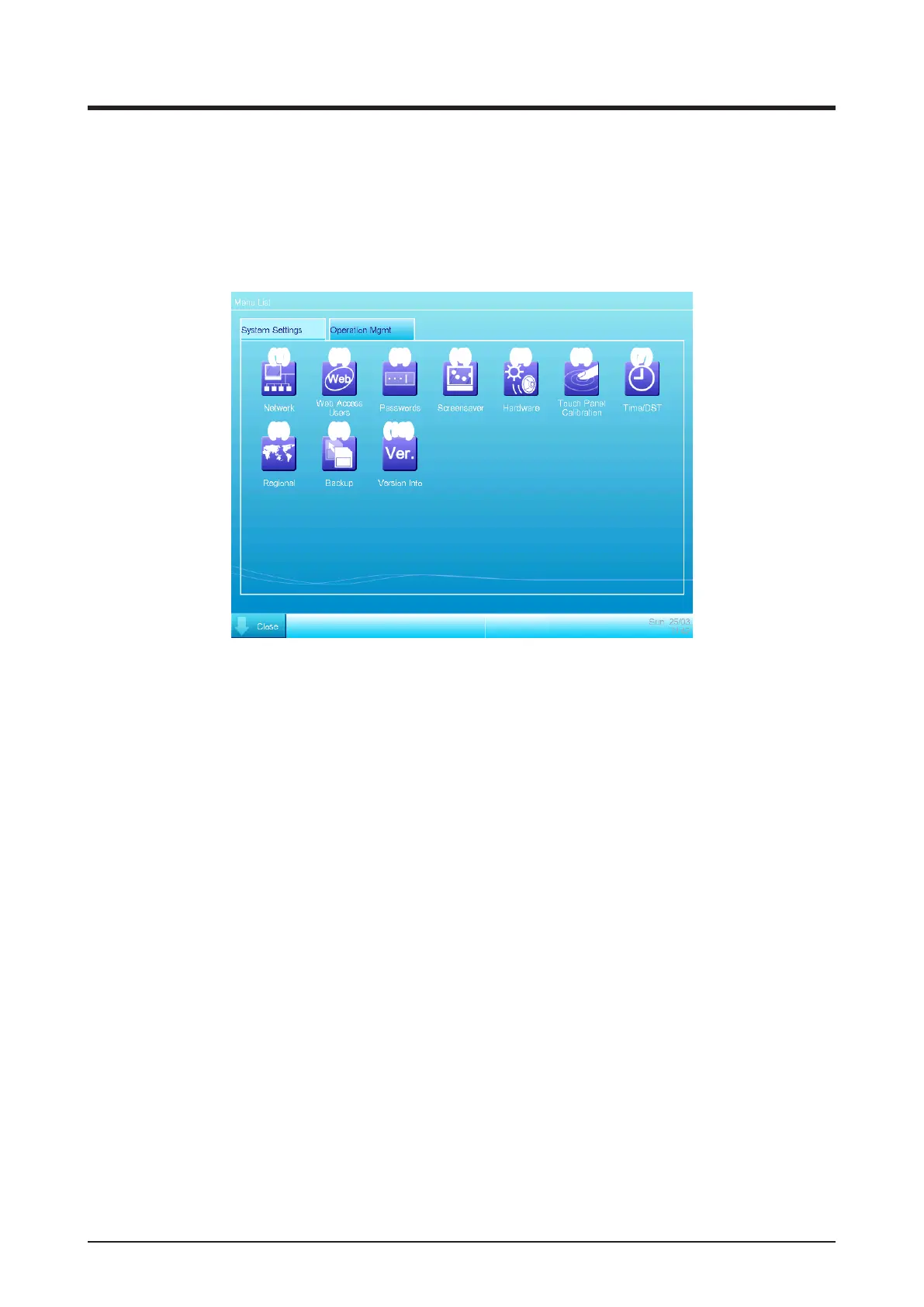 This screen is displayed when you touch the System Settings tab on the iTM integrator Menu List