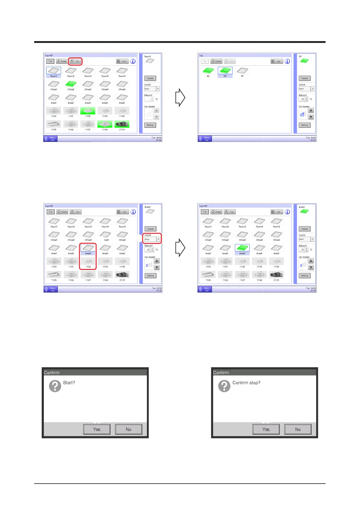 (2) Selecting “Start” in the On/Off combo box starts the selected area or management point while