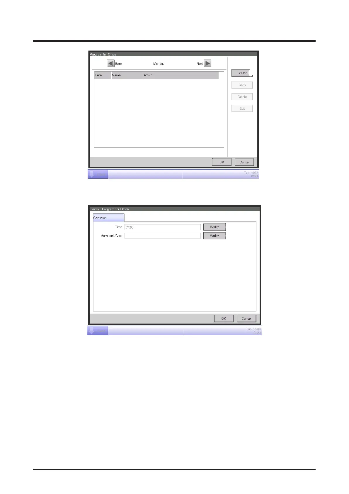 Touch the Modify button (6) and display the Time input dialog to specify the operation start