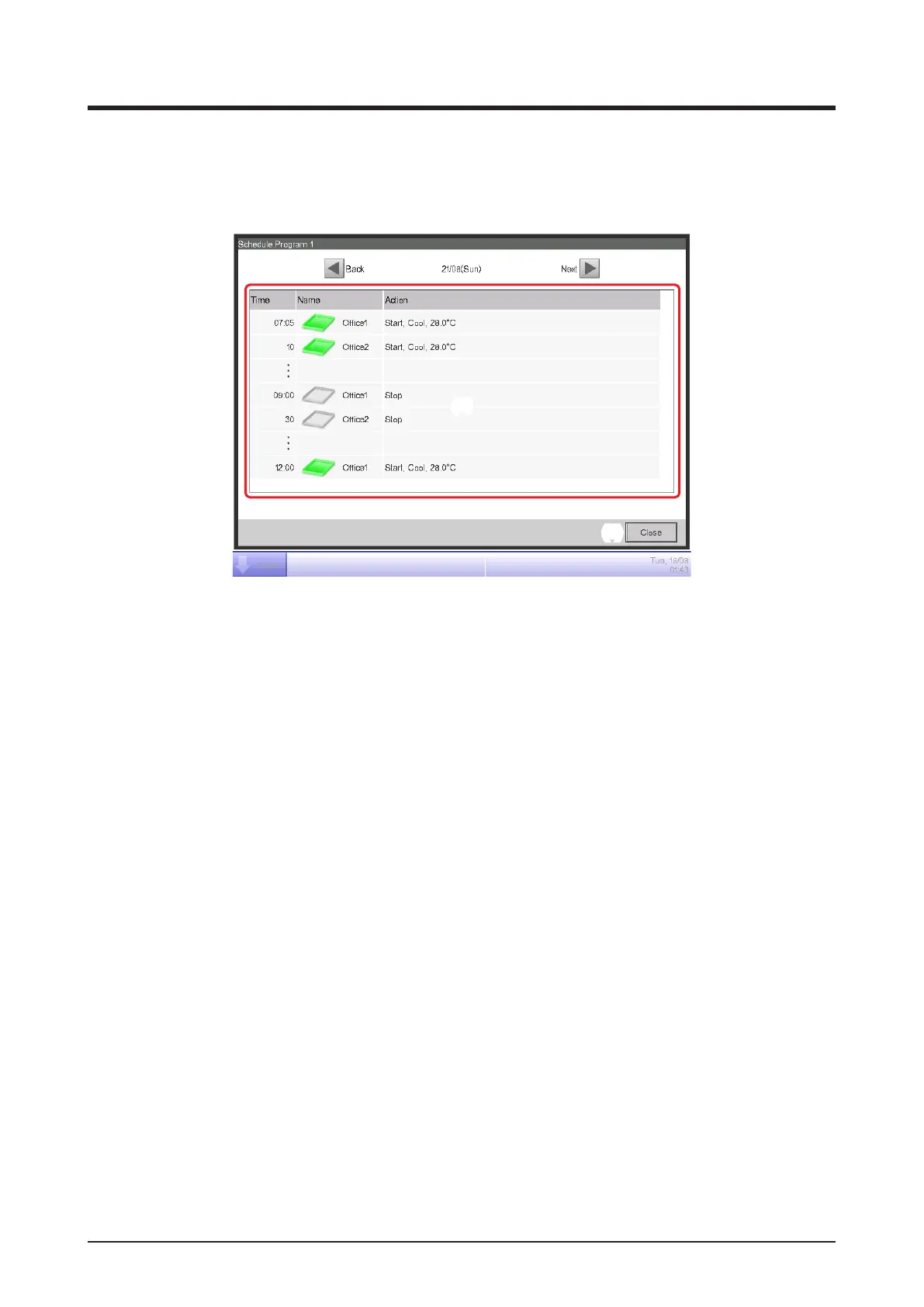 It allows you to check the setting details of schedule programs with the Schedule Settings list.