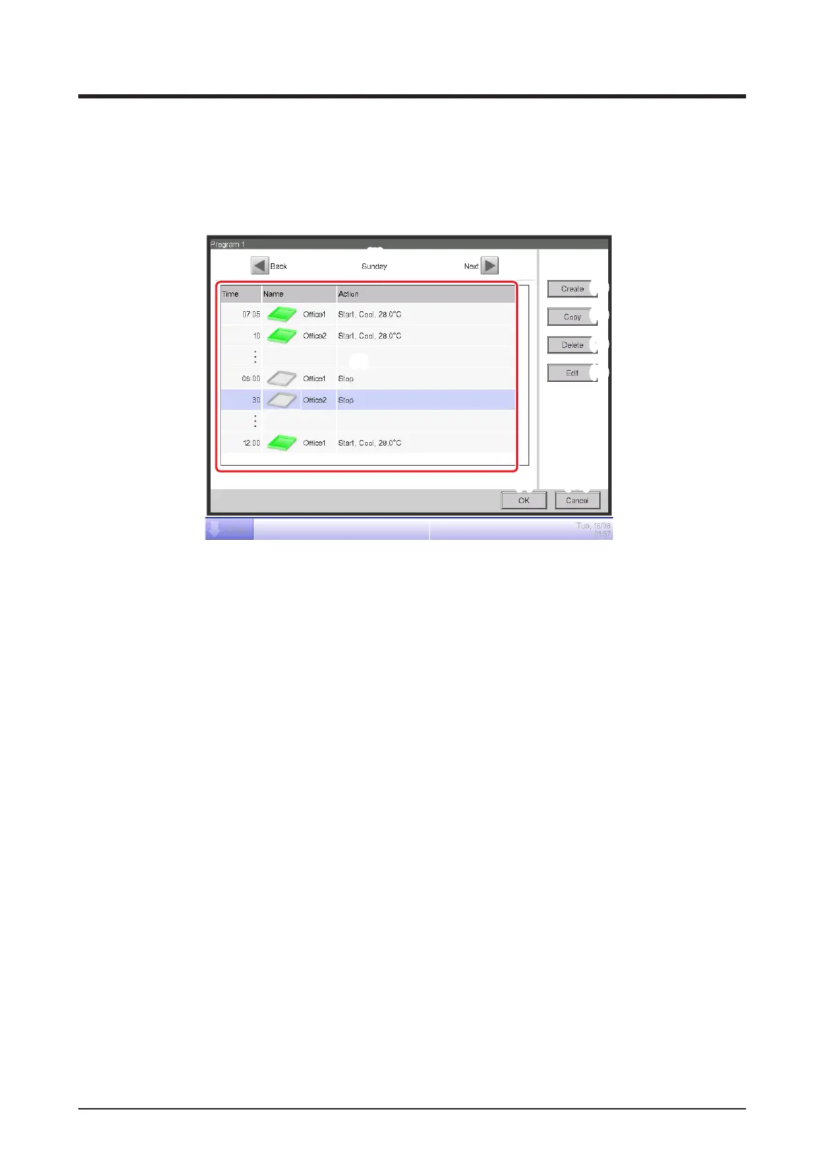 (2) Day of the week view area