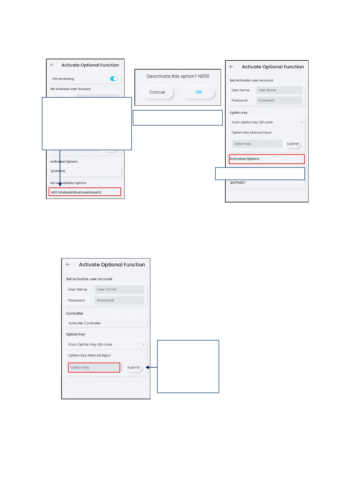 *NOTE: When a wrong option ID is activated, the activated option can be deactivated from