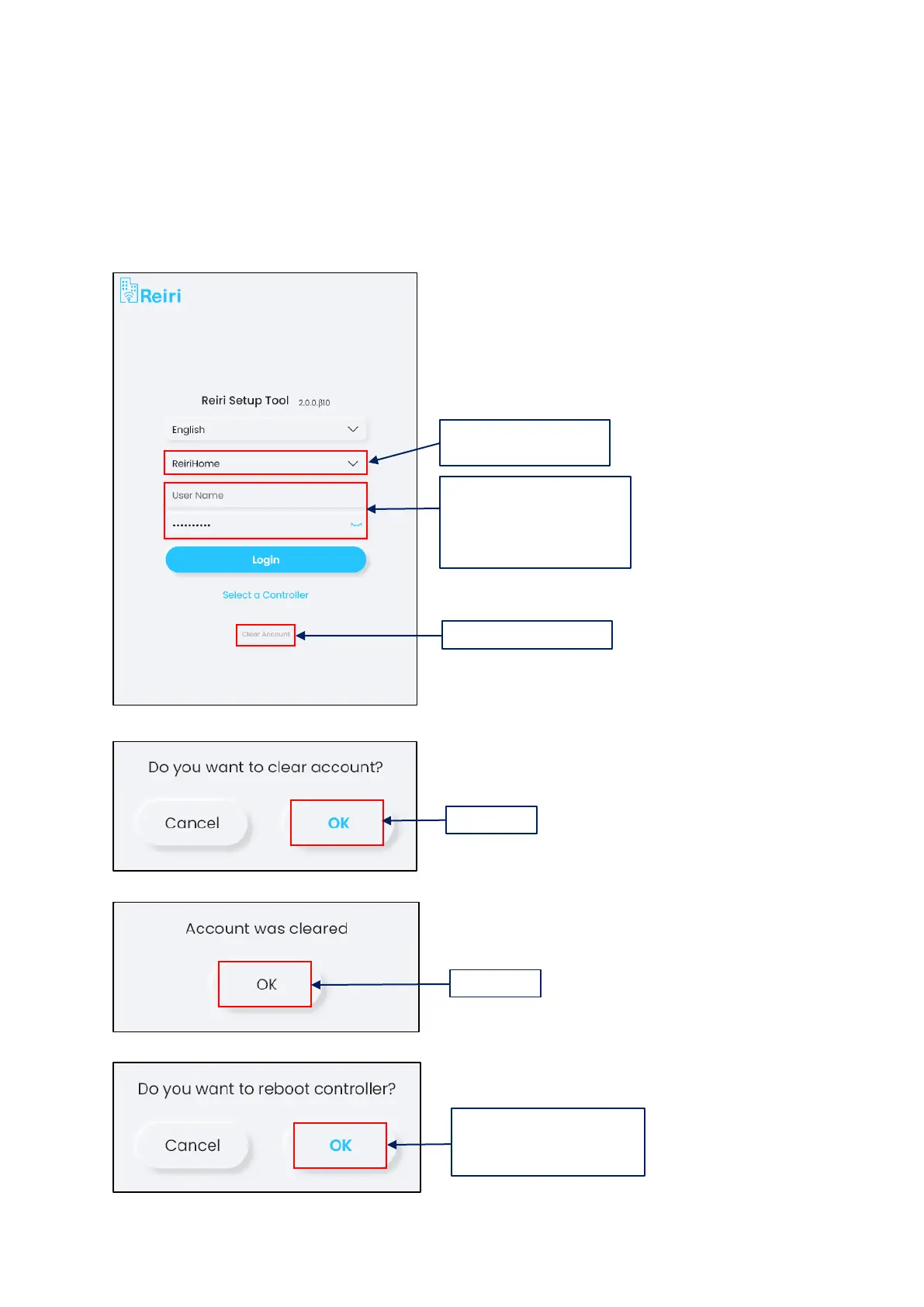 Clear Account function is used for clearing all accounts created by the user. This is to be used in a