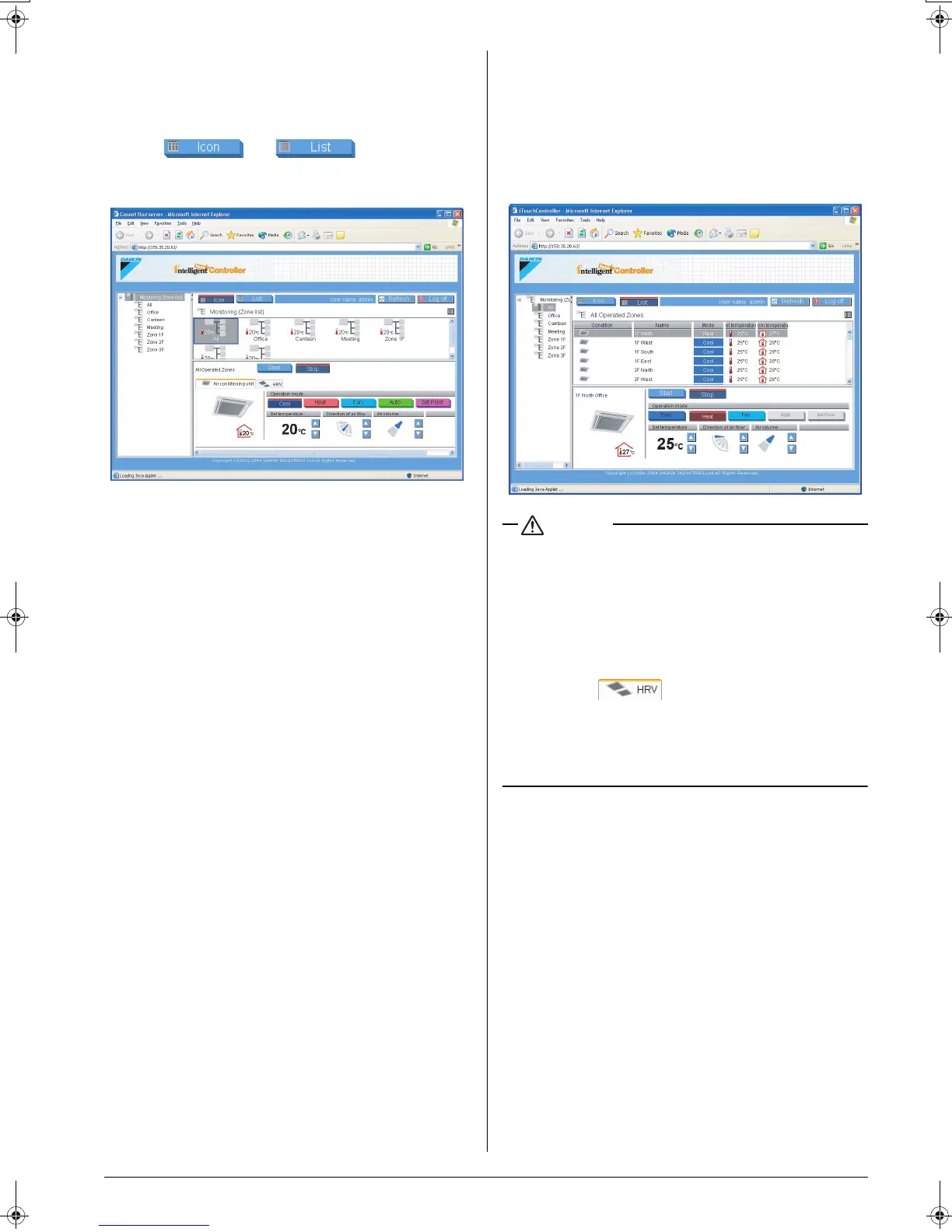 • In the air conditioner zone area, information on the room