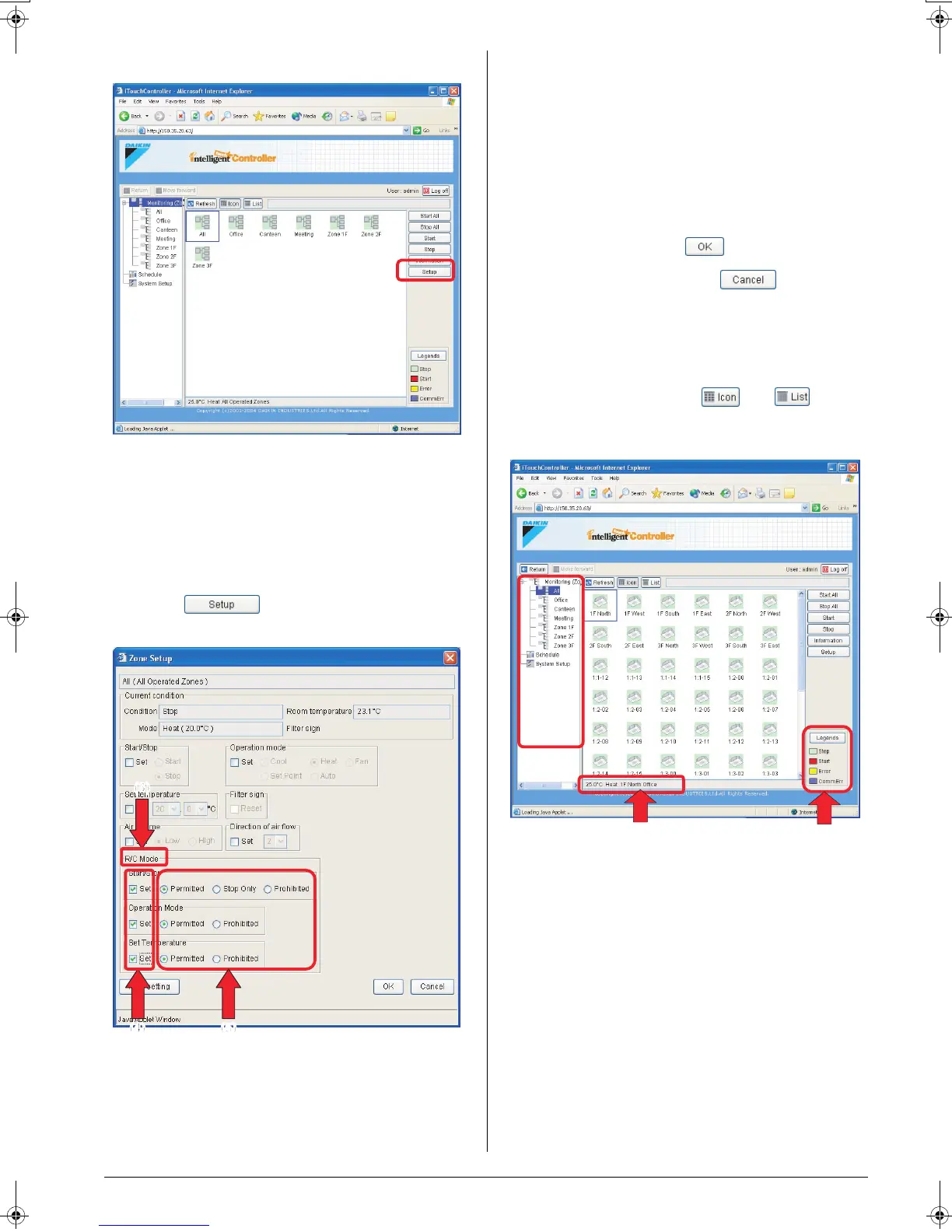 ing (Zone list)” item from the zone tree area (1). The operation