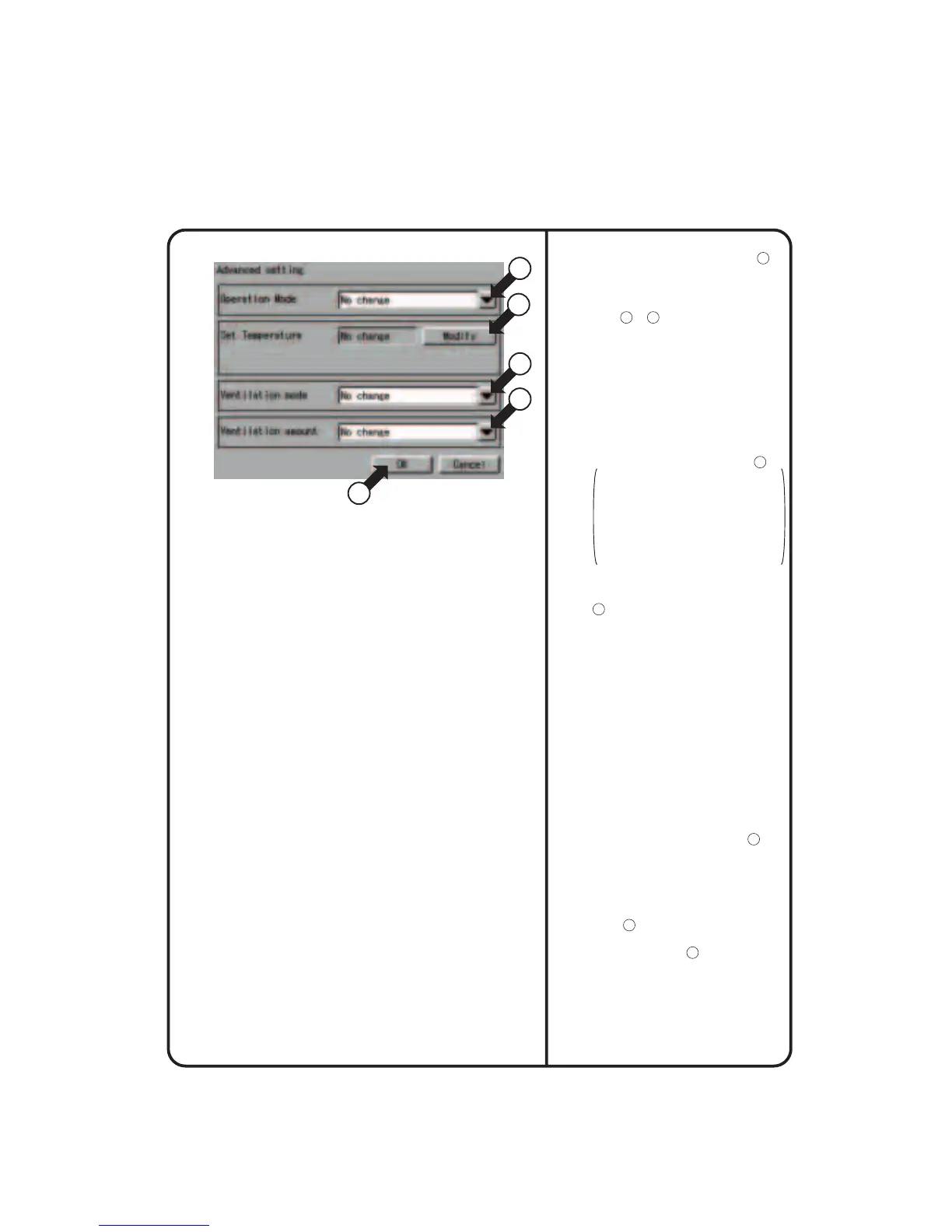 Auto, Fan, Set Point or No change.