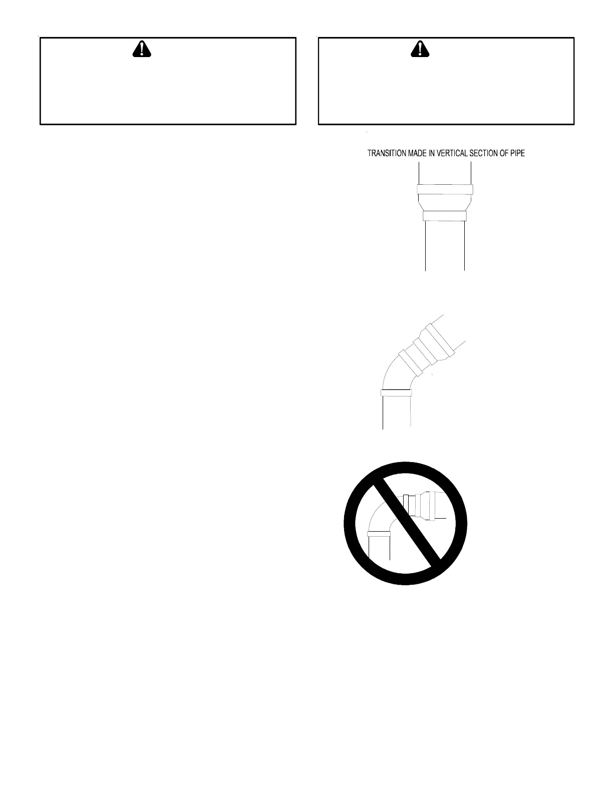 Some models require the use of 3” pipe. Do not transition