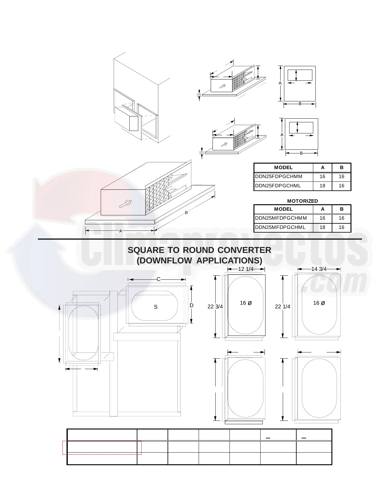 MODEL A B C D RETURN SUPPLY