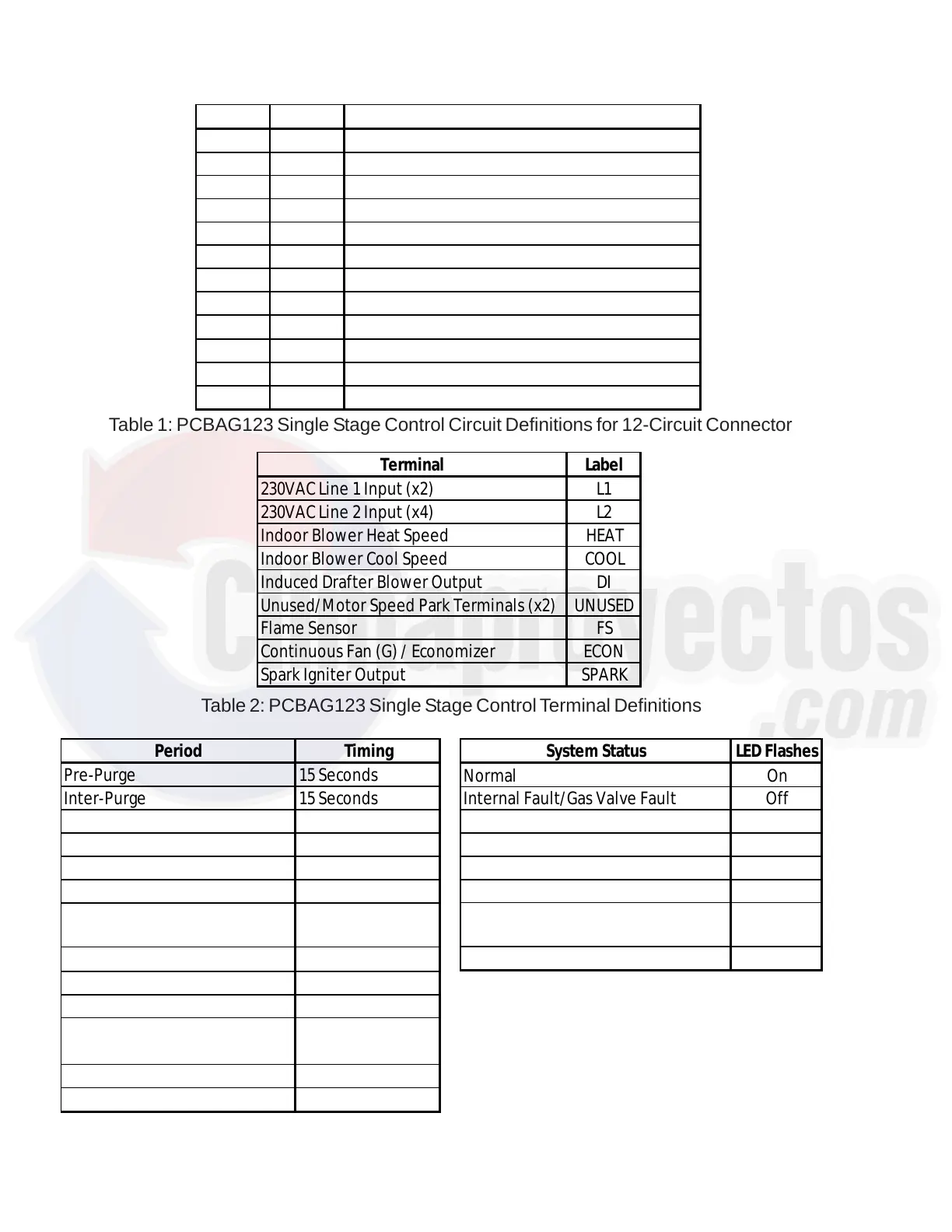 Table 2: PCBAG123 Single Stage Control Terminal Definitions