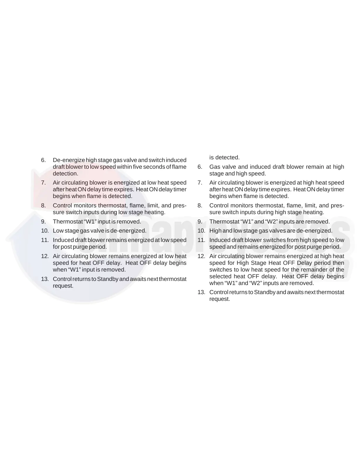 10. High and low stage gas valves are de-energized.